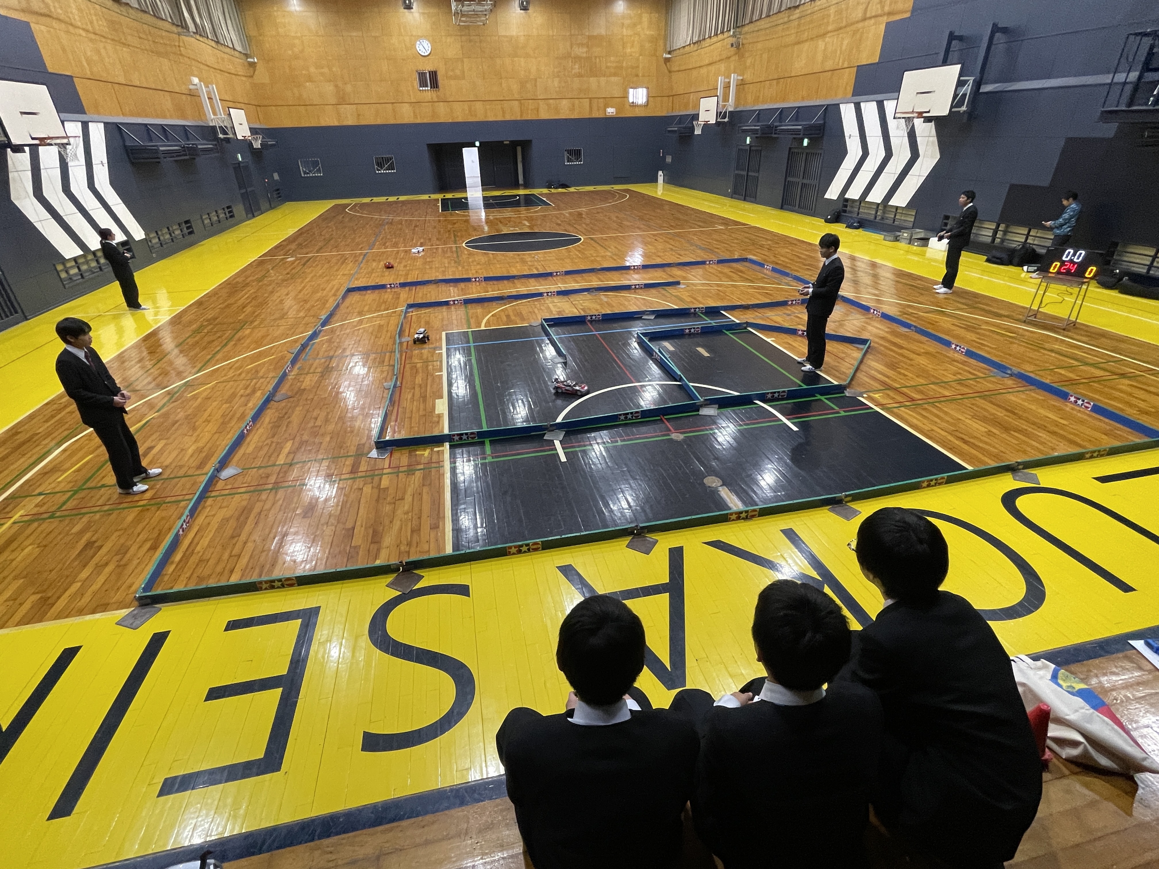 2月13日、トリニティーアリーナで、高2の古橋克拓君主催の「校内ラジコン大会」が開かれました。